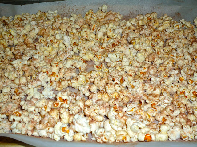 Step 1: Pop 8 cups Kernel Seasons popcorn. I used 2 tbs. Kernel Season's popping oil and about 1/2 cup Kernel Season's popcorn kernels and popped over medium heat according to package directions.